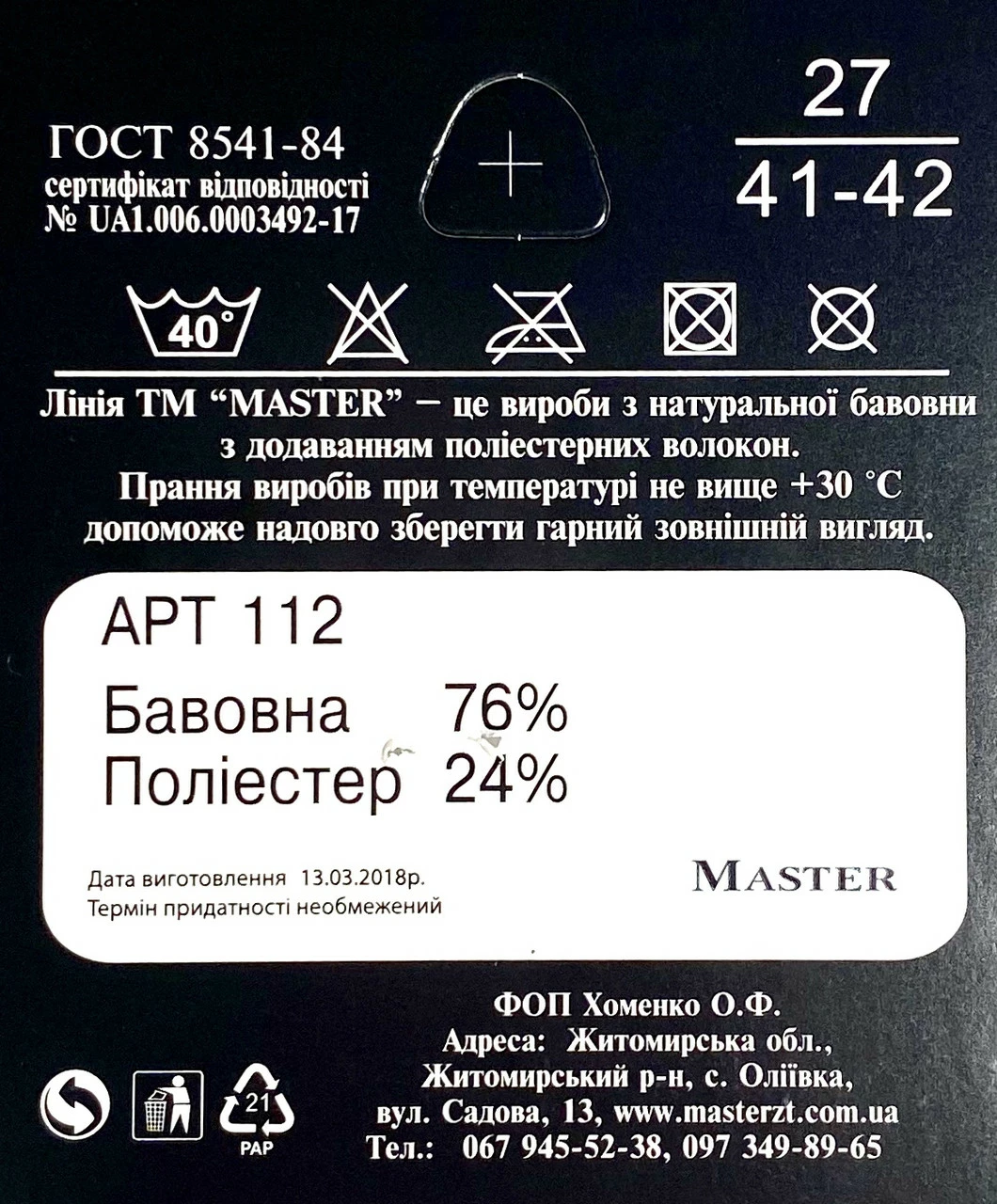 Склад: ХЛОПОК — 76%, поліамід — 24%.