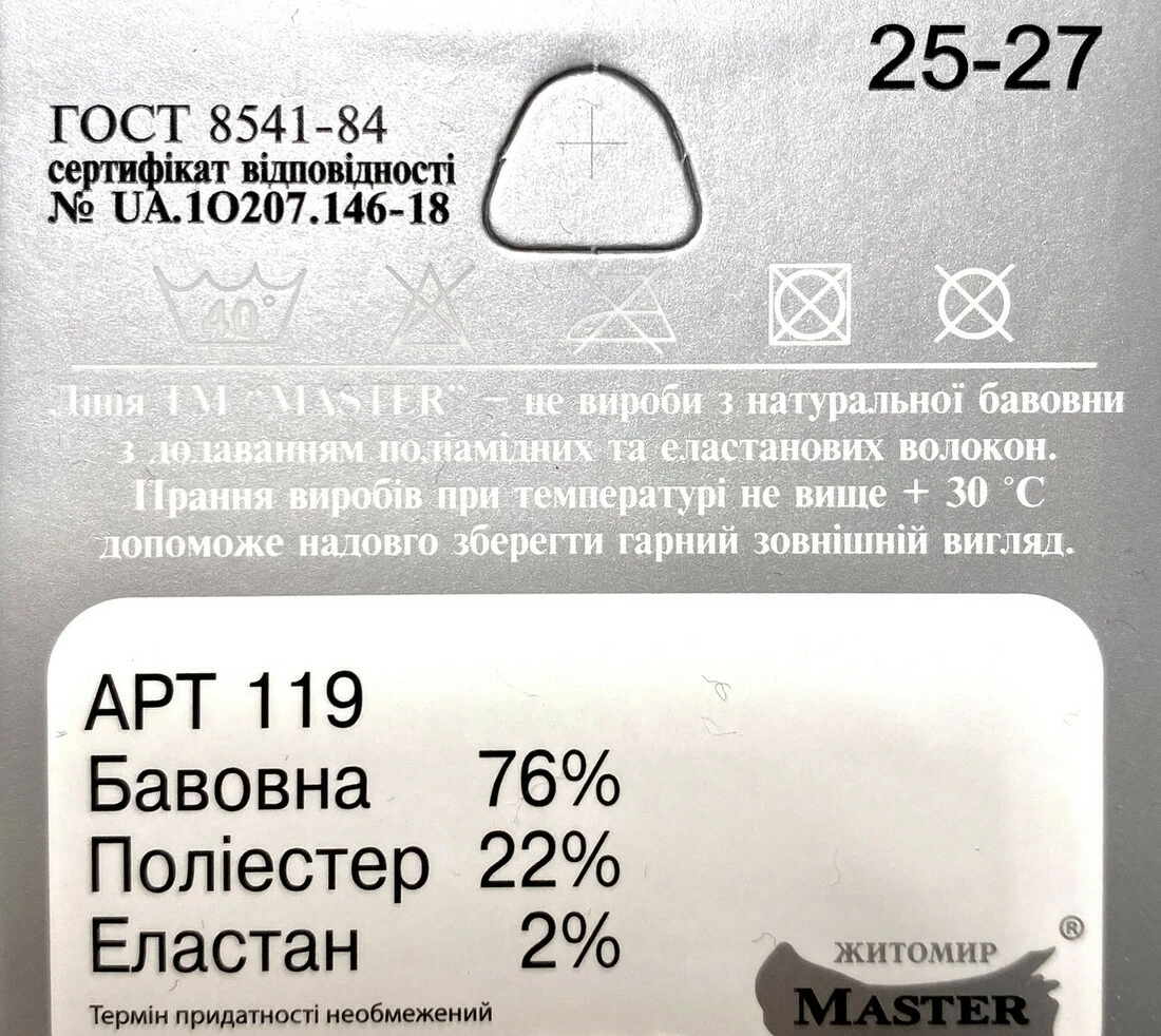 Склад: Бавовна — 76%; поліамід — 22%; еластан — 2%.