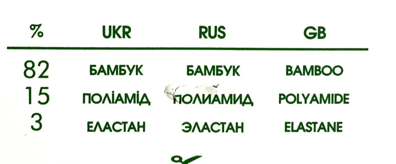 - Состав: бамбук - 82%, полиамид -12%, эластан - 3%.