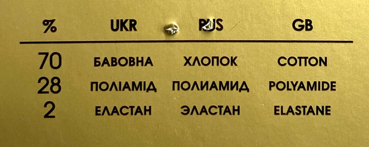 Склад: бавовна - 70%, поліамід -28%, еластан - 2%.