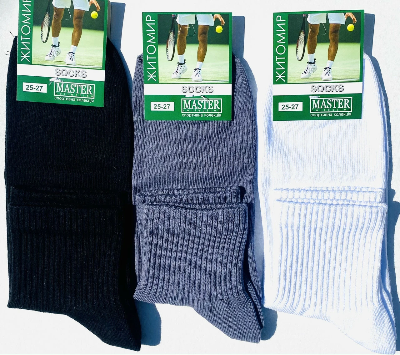 Шкарпетки чоловічі Мастер 25-27 ТМ" MASTER"(чорні, білі, сірі) високий борт однотонні¶
