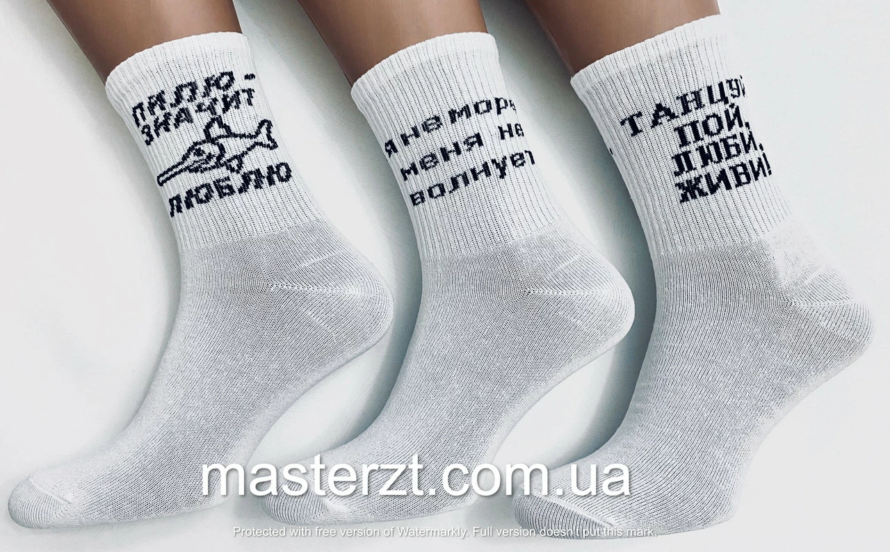 Шкарпетки жіночі демісезонні білі з надписами висока гумка ха Мастер