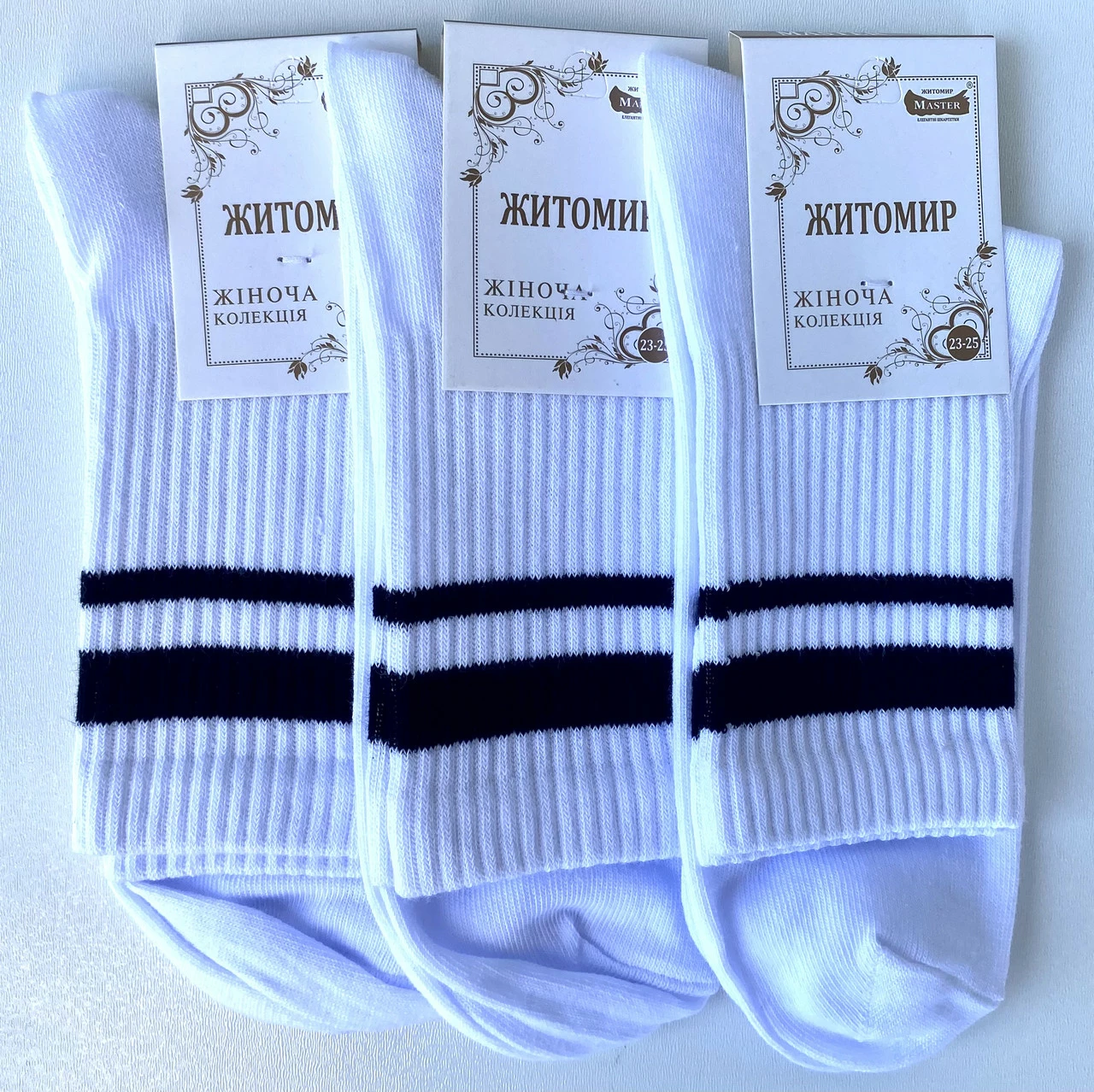 Шкарпетки жіночі демісезонні білі з чорними полосками висока гумка хб Мастер