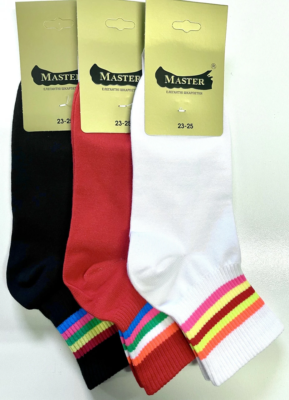 Шкарпетки жіночі демісезонні хб Мастер БЕЗШОВНІ ВИСОКИЙ БОРТ ЯСКРАВІ ПОЛОСКИ