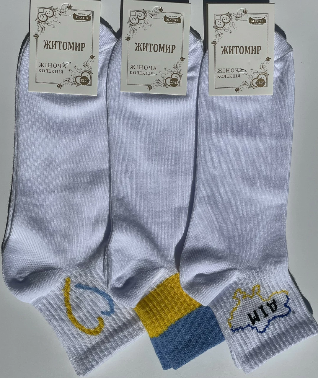 Шкарпетки жіночі демісезонні білі патріотичні не висока гумка хб Мастер