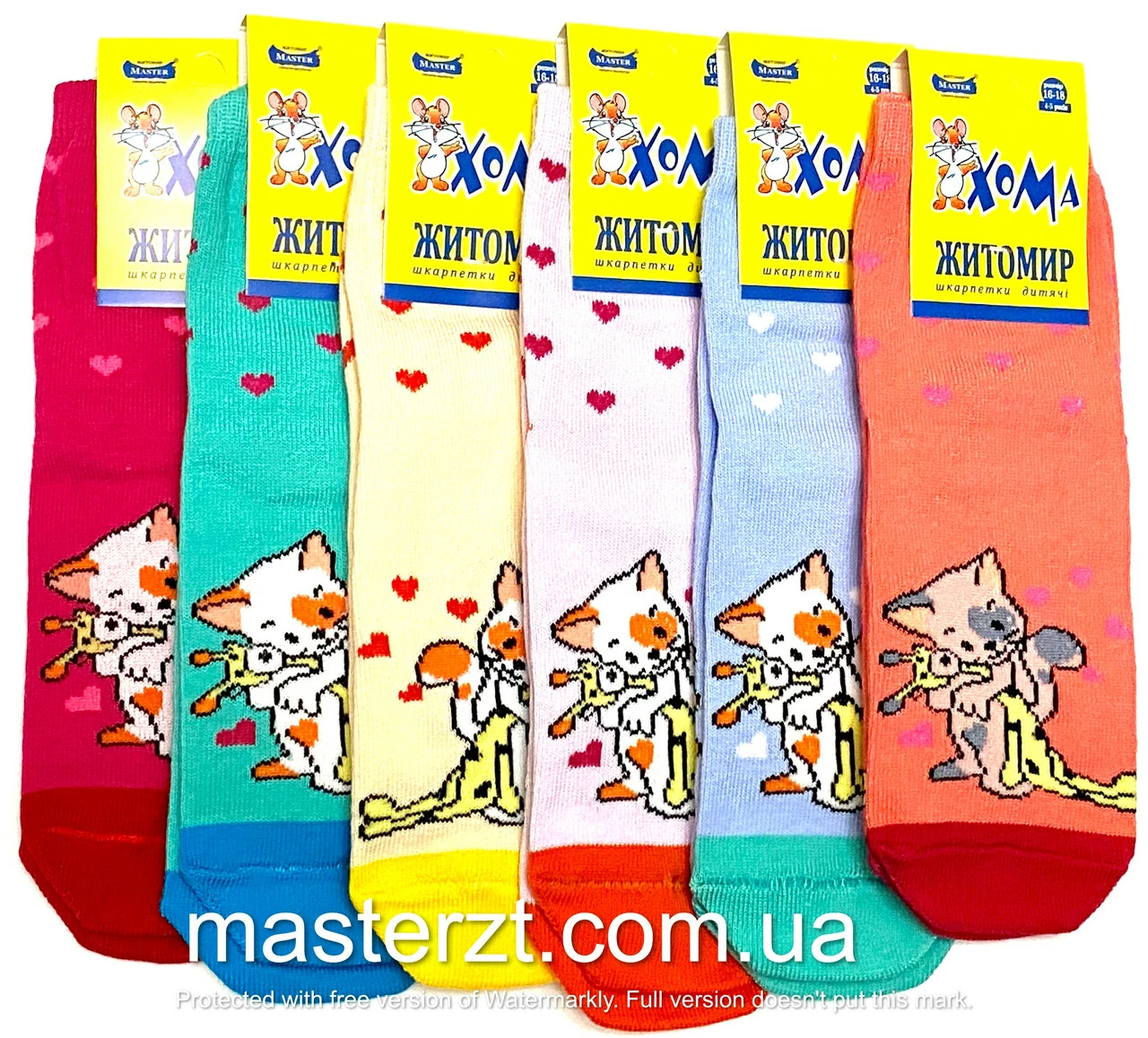 Шкарпетки дитячі Хома 16-18 весна осінь дівчинка¶, котик обіймає собачку, асорті 2050