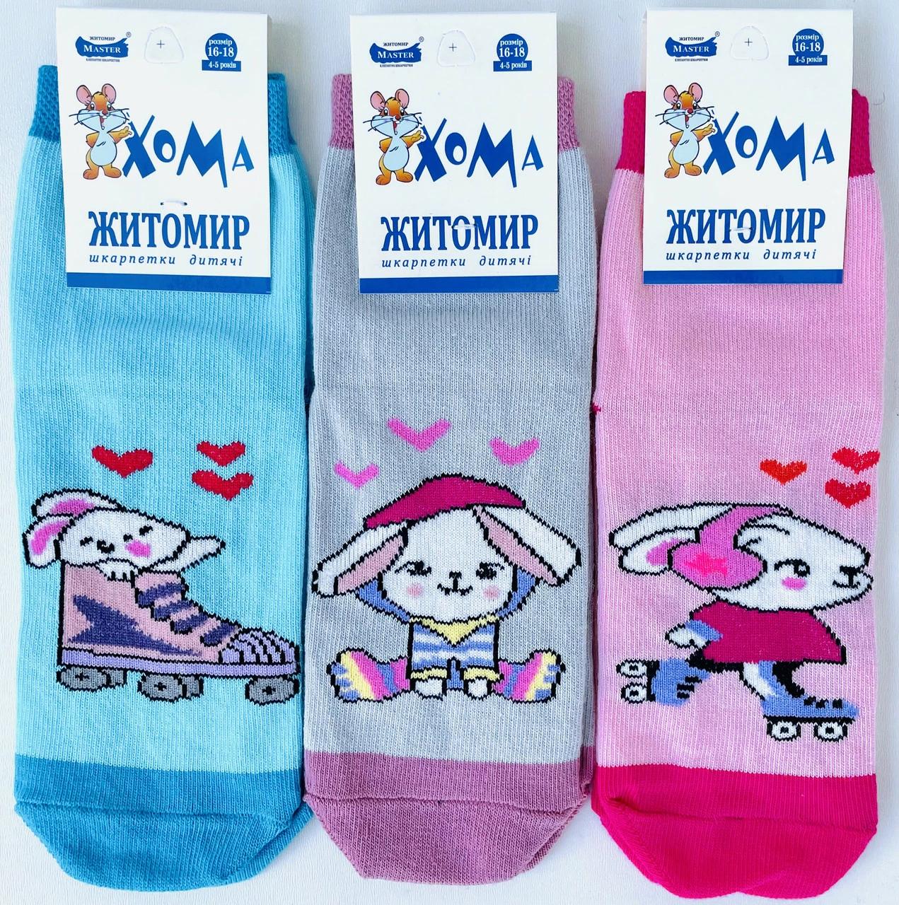 16-18, Шкарпетки ДИТЯЧІ ДЕМІСЕЗОННІ ТМ "ХОМА" ДІВЧИНКА Зайка на роликах