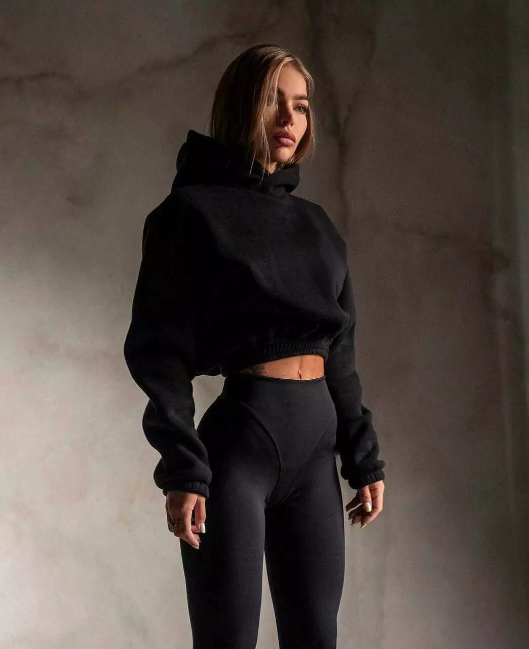 Укорочені тепле худі вільного крою , візуально звужує талію , та акцентує увагу на бедрах
