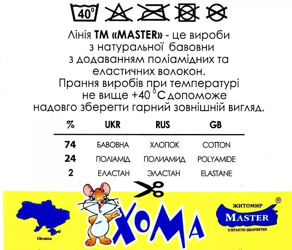 Склад: Бавовна – 74%, поліамід – 24%, еластан – 2%.